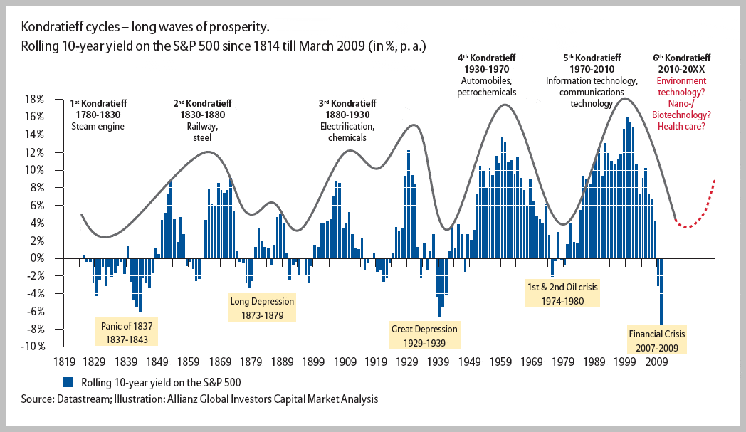 Les cycles techno-économiques se succèdent. À chaque fois, une nouvelle vague d’innovations radicales remet en cause l’ordre établi. La révolution industrielle n’a pas pris fin avec le chemin de fer ; elle a été prolongée par l’électricité, puis par le pétrole, puis par les microprocesseurs. De la même manière, la fin du cycle numérique annonce le début d’une nouvelle ère.