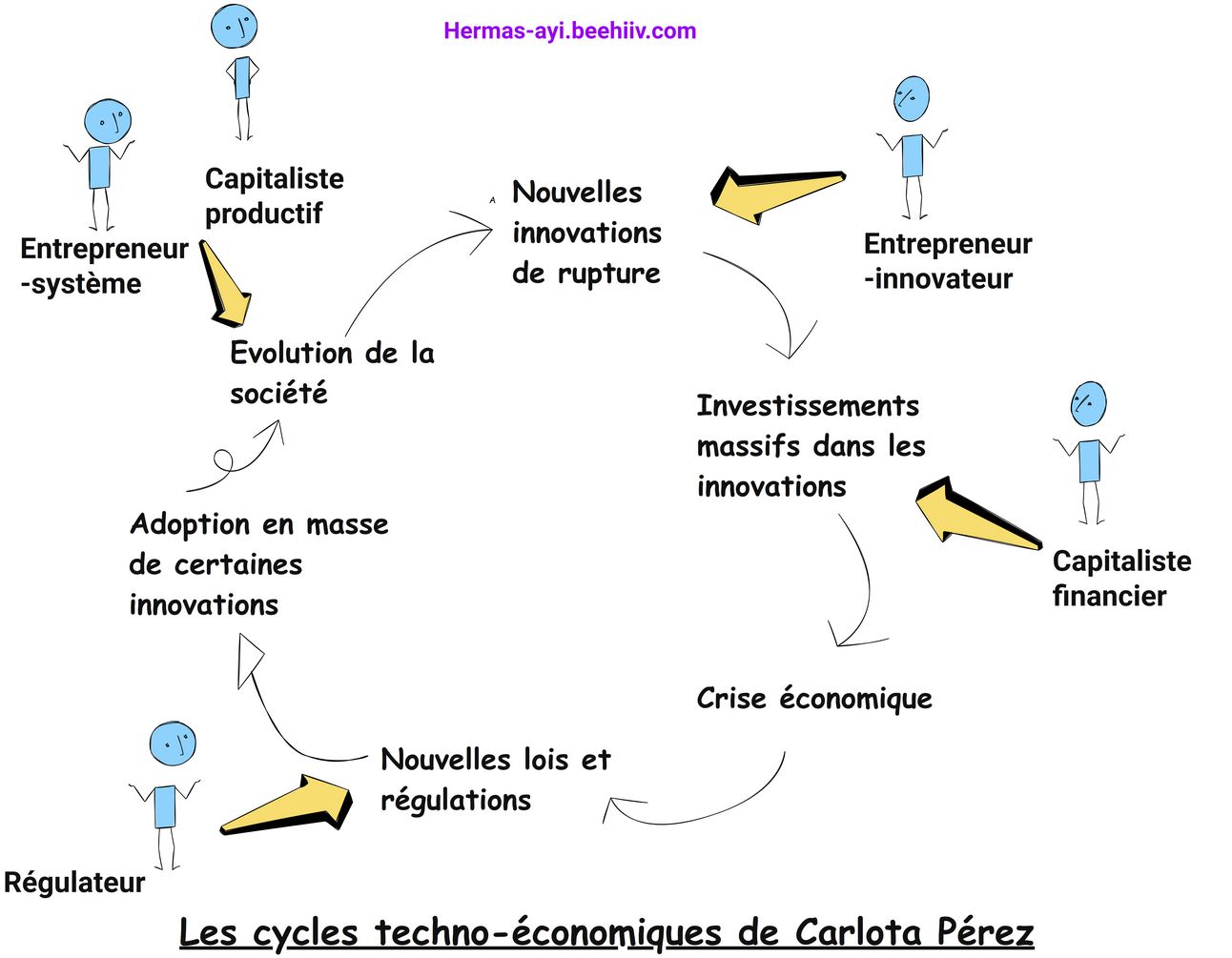Pour ce faire, elle reprend les idées fondamentales de Kondratiev et de Schumpeter ( les cycles longs, l’innovation comme force de transformation) mais elle va plus loin.